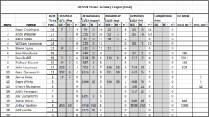 - The league is run over one calendar year with the winner announced when there are no more eligible competitions. The European Grand Prix competitions, the British Classic Accuracy National Championships and any British club competition will have league status. Two months (e.g. 20th of a month to 20th of month two months later) notice is required for a re-arranged league competition to retain its league status.